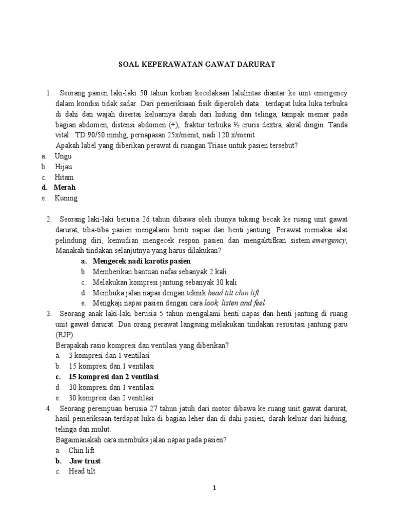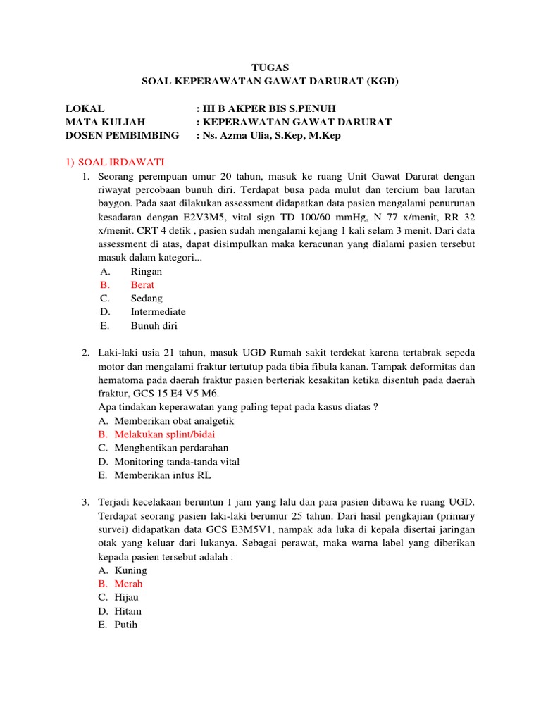 Doc Contoh Soal Keperawatan Gawat Darurat Dan Kunci Jawaban Lengkap Aidil Fitrisyah Academia Edu