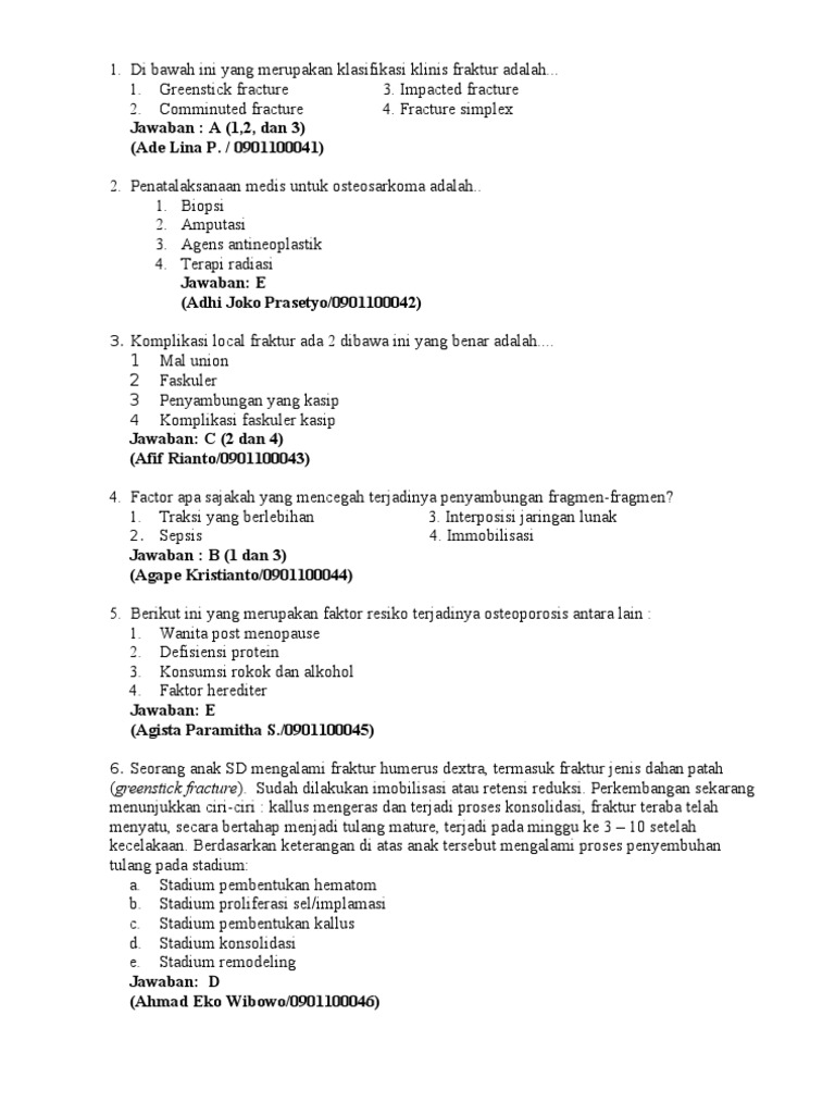 Kumpulan soal tentang fraktur. Soal K13 Kelas 6 SD Tentang Masa Pubertas Kumpulan Soal Kelas 4 SD Lengkap dengan Kisi-Kisi Soal Soal Ulangan Harian Matematika Kelas 3 SD Materi Satuan Panjang. Inilah soal kasus tentang fraktur dan informasi lain yang masih ada hubungannya dengan topik soal kasus tentang fraktur yang Anda cari. K adalah seorang pelayan toko yang berusia 43 tahun TB 165 dan BB 60 kg mempunyai kebiasaan makan 3x1 dan mengemil keripik kentang paling tidak 1 bungkushari 250 gram dan kurang makan sayur dan buah.
