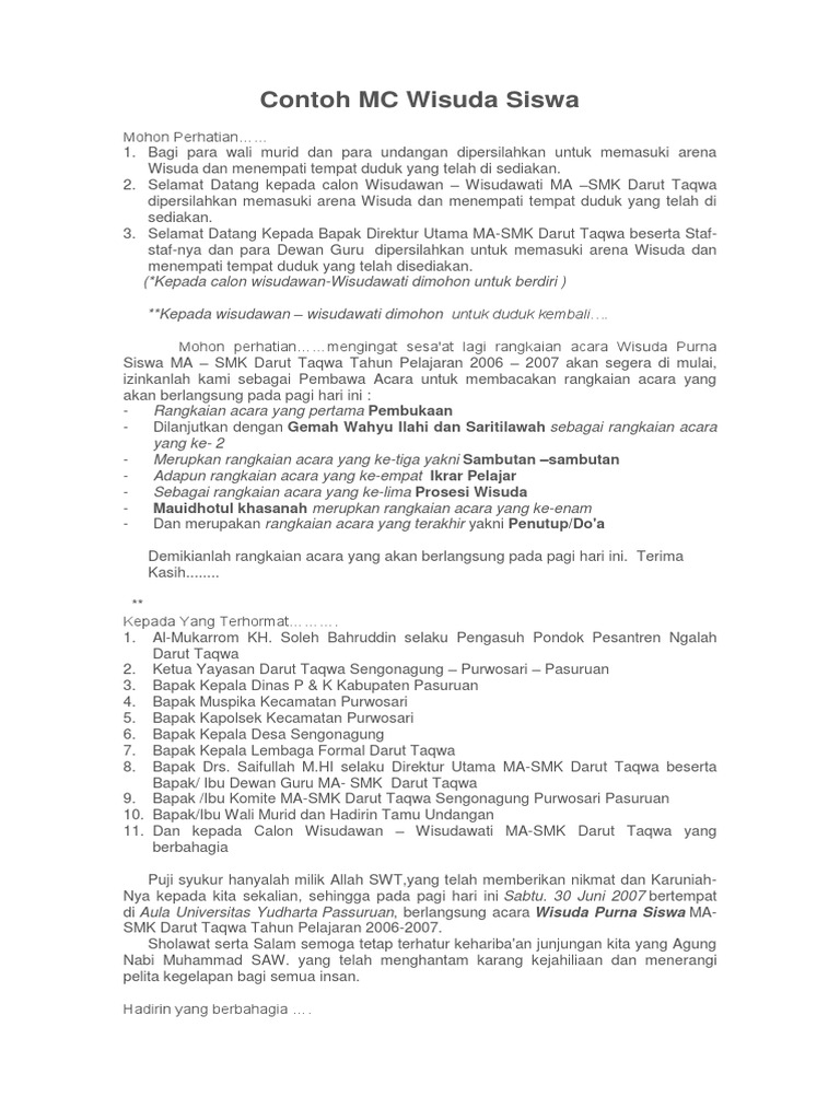 Contoh Teks Mc Wisuda Siswa Monoteisme Alquran